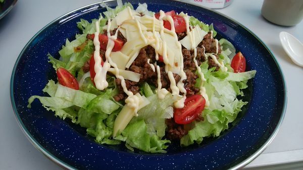 そんな中でしたが、朝はホットサンド、昼はちゃんとミート作りから頑張ってタコライス、夜はBBQ&カレーライスを作って、息子達に振舞いました。
