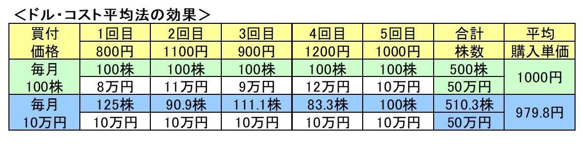 例えば、毎月という形でなくても、「ボーナスが出たらA社の株式を一定額購入する」とか、「季節に1度ずつ外債ファンドを一定額購入する」という方法でも、数年続ければ「ドル・コスト平均法」と同じ効果が出てくるはずです。