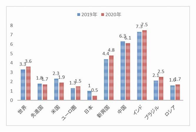 それによると今年(2019年)の世界経済全体の成長率は3.2%で、来年(2020年)は3.5%になっており、成長率が上がることが見込まれています。