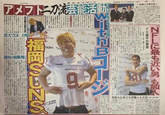 チーム創設1年目から昨年末まで3年間コーチをしていたみらいふ福岡SUNSに、タレントの徳田浩至君(元ブリリアン、ブルゾンちえみの後ろでガタイの良さを見せていた人って言ったほうが早いかな)と、プロアメフト選手の栗原嵩君(元IBM)が加入してくれました。
