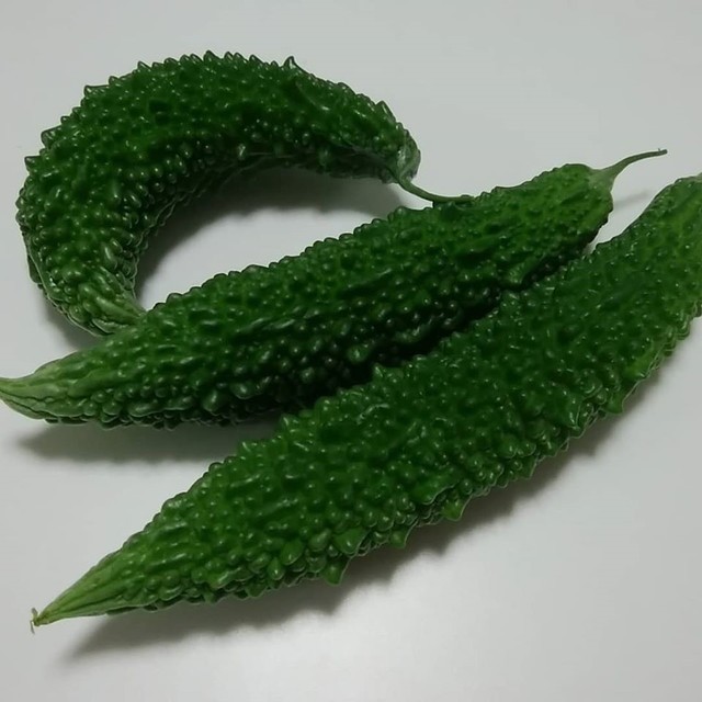事務所のベランダで育てているゴーヤの初収穫