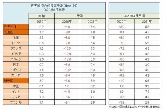 最新の発表ではIMFは世界全体の2020年の成長率をマイナス4.9%と予想しています。
