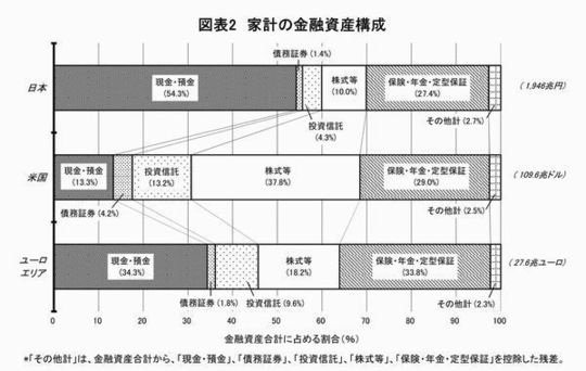 データ出所:日本銀行調査統計局「資金循環の日米欧比較」2021年8月20日