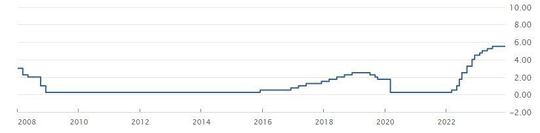 1月時点の政策金利4.5%から7月には5.5%まで引き上げられ、これ以上の利上げは行われなかったため、市場参加者の間ではこれで利上げのピークを迎えたものとして考えられています。