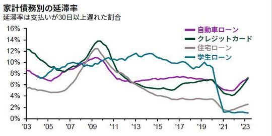 バイデン政権下で行われてきた学生ローンの返済据え置き措置が終わって、10月から再び返済が始っていることを考えると、今後はさらなる延滞率の上昇が起きる可能性が高いでしょう。