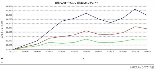 その中でも3本のファンドから選んでいただくことが多くなっていますが、3本のファンドのいずれも目論見通りの安定したパフォーマンス(2024年1月~11月)になりました。
