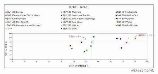 <S&P500業種別パフォーマンス> 2024年1月~11月